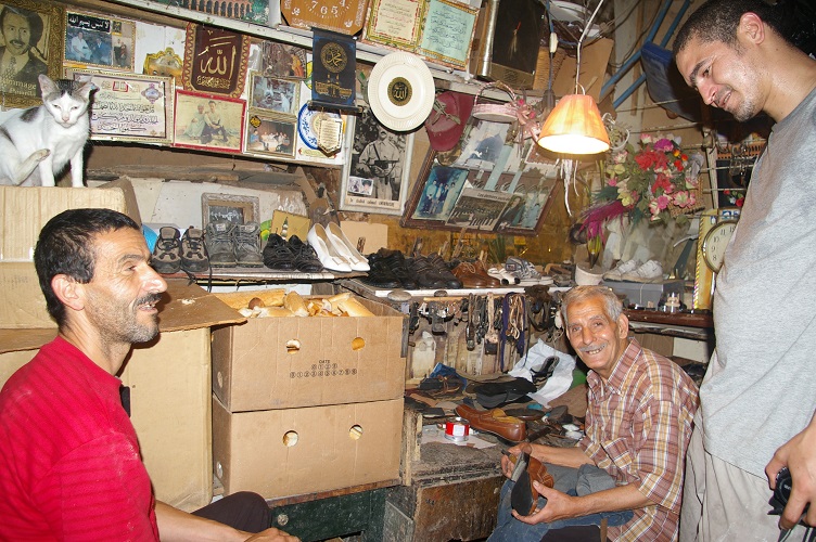 Algiers7The entire district seems to be in a state of decay, but it has many surprises in store for lucky visitors. A cobbler insists we inspect his tiny workshop where there is not enough space for all of us to stand in or even to stand up. We are invited to enter one of the houses at the end of a dilapidated alley. Behind the heavy ornate door is a small two-storey arcade courtyard, the flats around it home to an extended family. The interior surprises with its cleanness and excellent state of repair. Near the central market place, an elderly Italian who settled in Algiers decades ago proudly displays the ceramic mosaic he’s creating for his beloved wife.