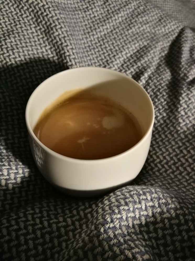 275 ← Previous Next → Nespresso in an Austrian porcelain cup my friend Charlotte brought for me from Vienna.