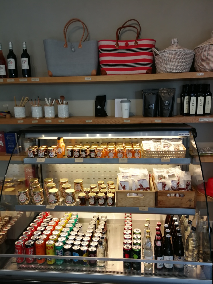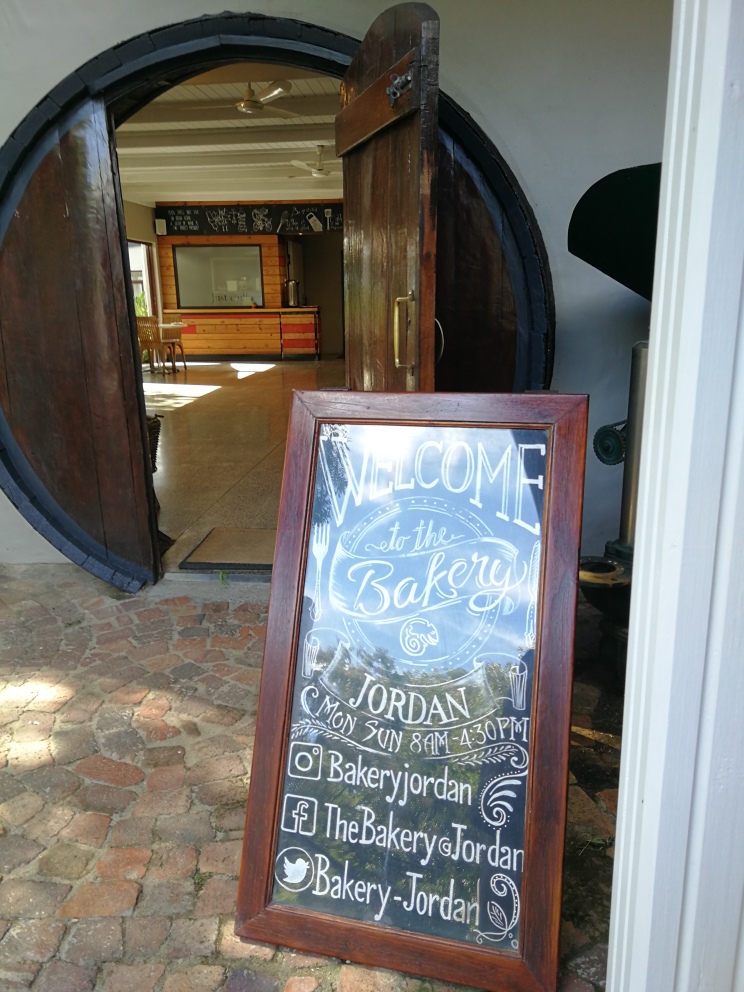 Early Sunday breakfast with a view at The Bakery on the Jordan Wine Estate was a real treat. I love Eggs Benedict, but not all restaurants know how to prepare the dish in a way that is really and truly what it can be. The Bakery does. Great coffee, too. And right now, a special on their olive oil: buy two bottles (0,5l, cold extracted, extra virgin) for R98 each and get one free. A real bargain! They also sell giant chocolate-chip cookies. We returned home with a bag full of goodies and smiles on our faces.