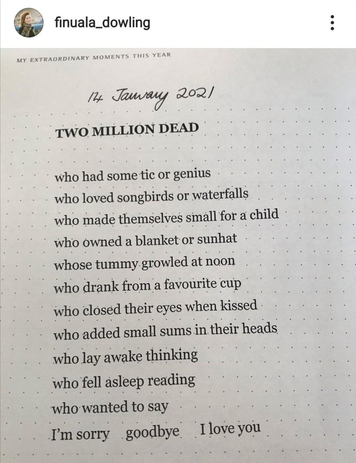 Finuala is one of South Africa’s finest writers and this poem … I am reading it again and again and I want to whisper to everyone, Please, please keep safe – as safe as you possibly can. Please.