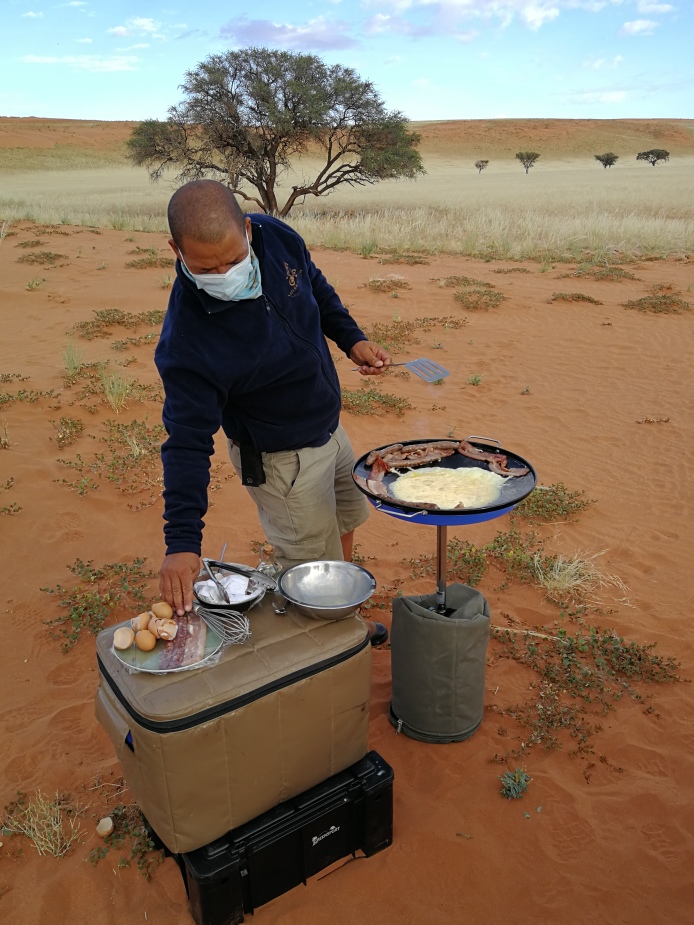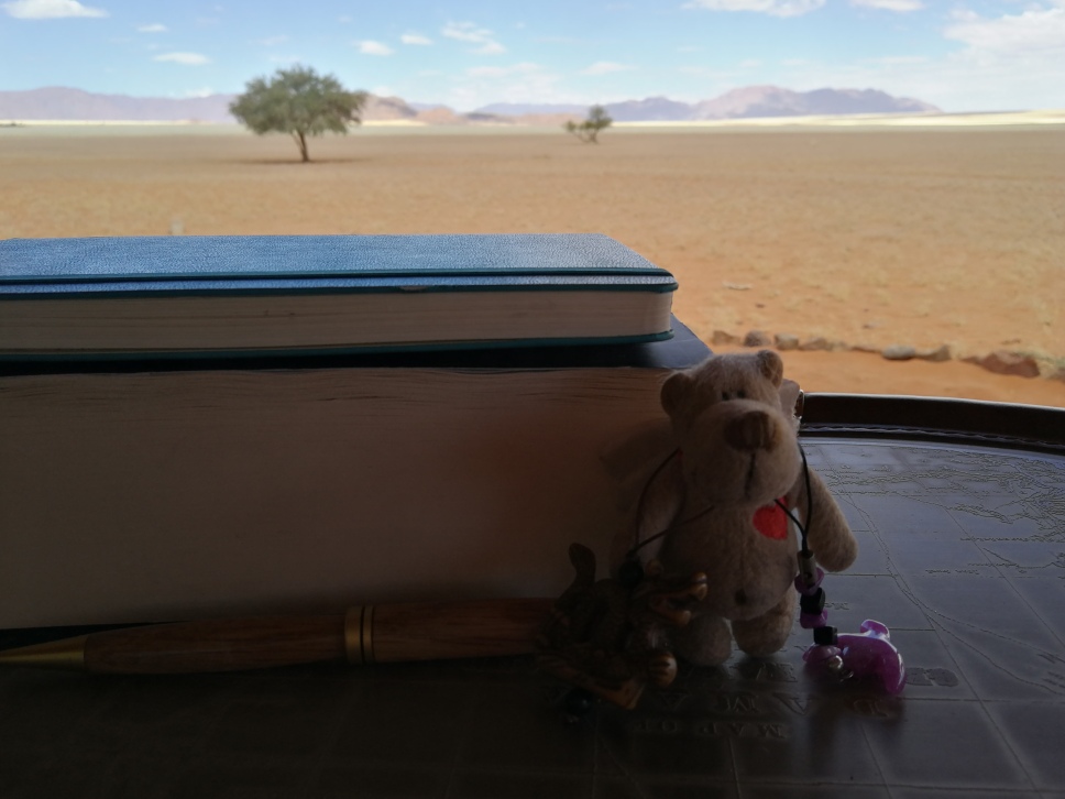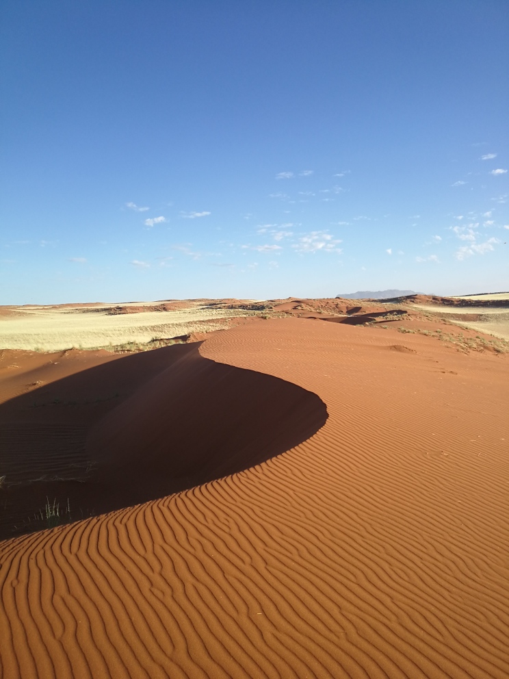 The Kwessi Dunes Natural Selection camp in the NamibRand Nature Reserve is simply paradise on earth. Highlights: reading on our tent’s stoep in the afternoon’s heat while jackals, oryxes or a lonely ostrich wander by on their way to or from the water hole; sleeping under the Milky Way; our guide Dawid telling us to go for a short walk while he prepared ‘coffee’ and magically produced an entire breakfast on the dunes; and our guide Alfred speaking and singing in Khwedam on the dunes. His language is still spoken by only a few thousand people, and is so beautiful, I will remember its sounds and cadences for the rest of my life.