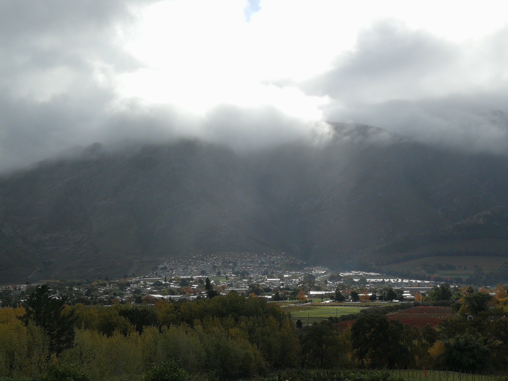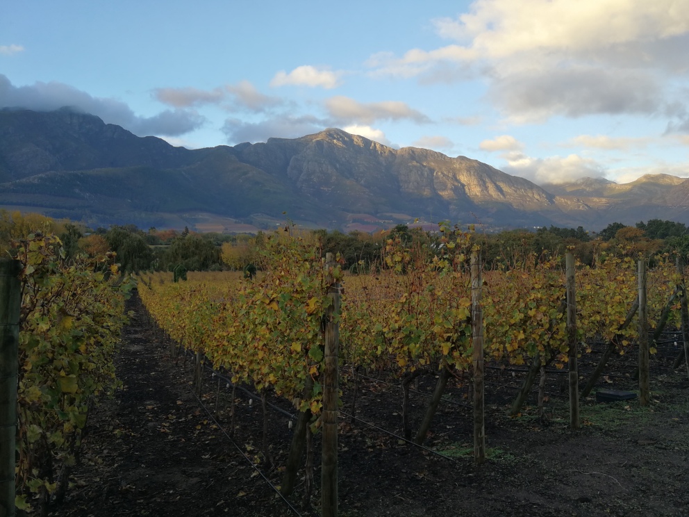 And it was good to have lovely things planned for the day that were not connected to the past, but firmly rooted in my new reality. I was mostly lazy, but did some work and finished reading a manuscript and began another (both amazing in their own right) for Karavan Press. I spent some time in a hot tub before the rain chased me indoors. We managed to walk twice between the rain showers, soaking in the astounding views of Franschhoek in her autumn finery. Before lunch, we visited La Cotte wine and cheese shop – my love buying wine and I indulging in buying some wine labels. The prices were amazing, all much lower in comparison to the shops in Cape Town.