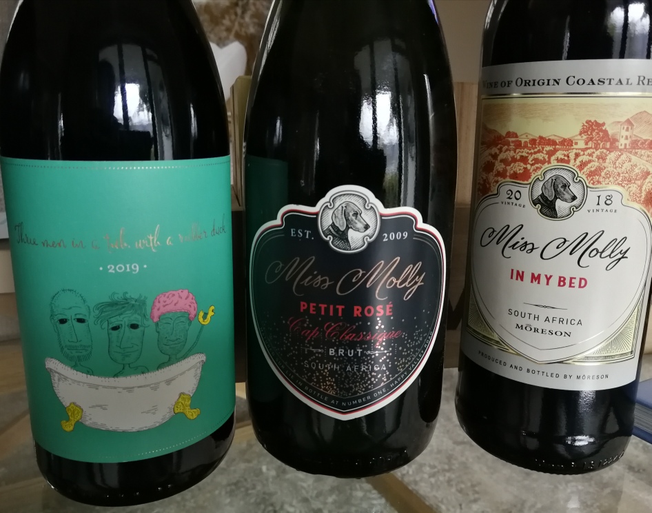 THREE MEN IN A TUB WITH A RUBBER DUCK & Miss Molly’s IN MY BED – who could resist? I can see the following in my near future: a late morning in bed with Miss Molly red, a late afternoon in the tub with three men and a rubber duck, and an evening with dear friends and Miss Molly pink bubbles. Something to look forward to.