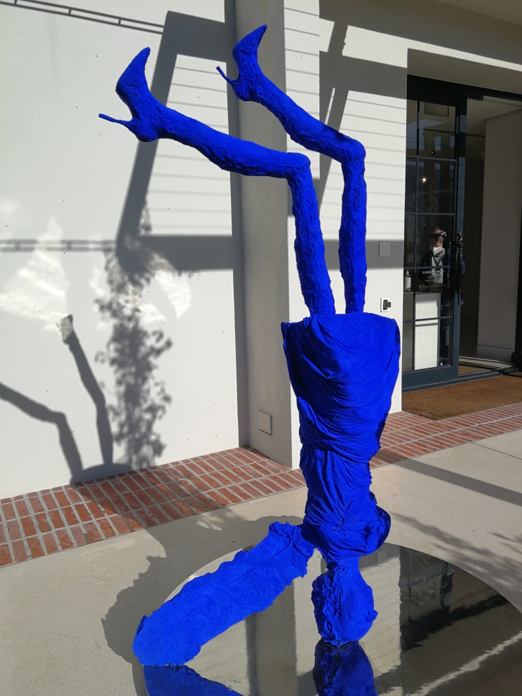 Then it was time for some culture: Everard Read Gallery at the magnificent Leeu Estate. There is a statue at the entrance of the gallery that made me immediately think of the last fifteen months of the pandemic, with most of us crashing to earth head-first despite our wings wide open. Blue. High heels, pretty dress and all.