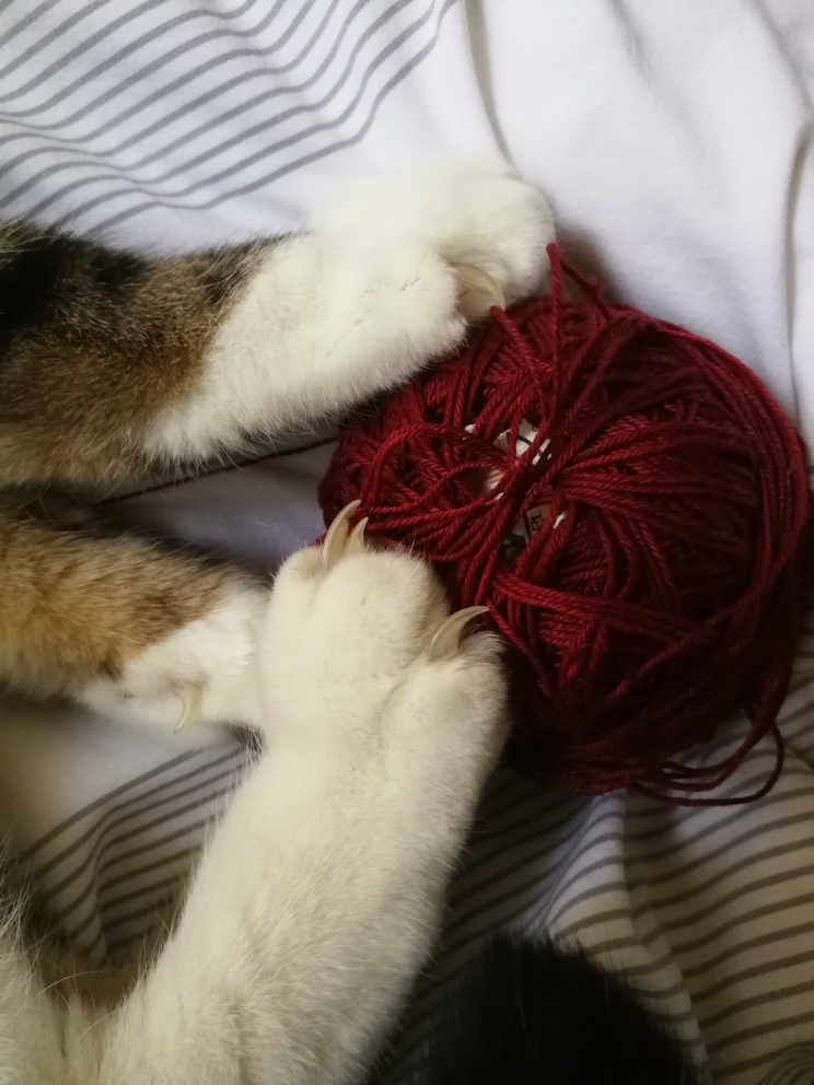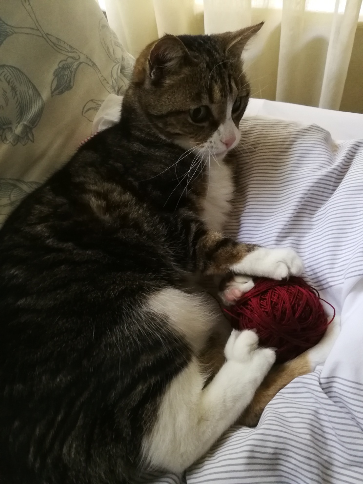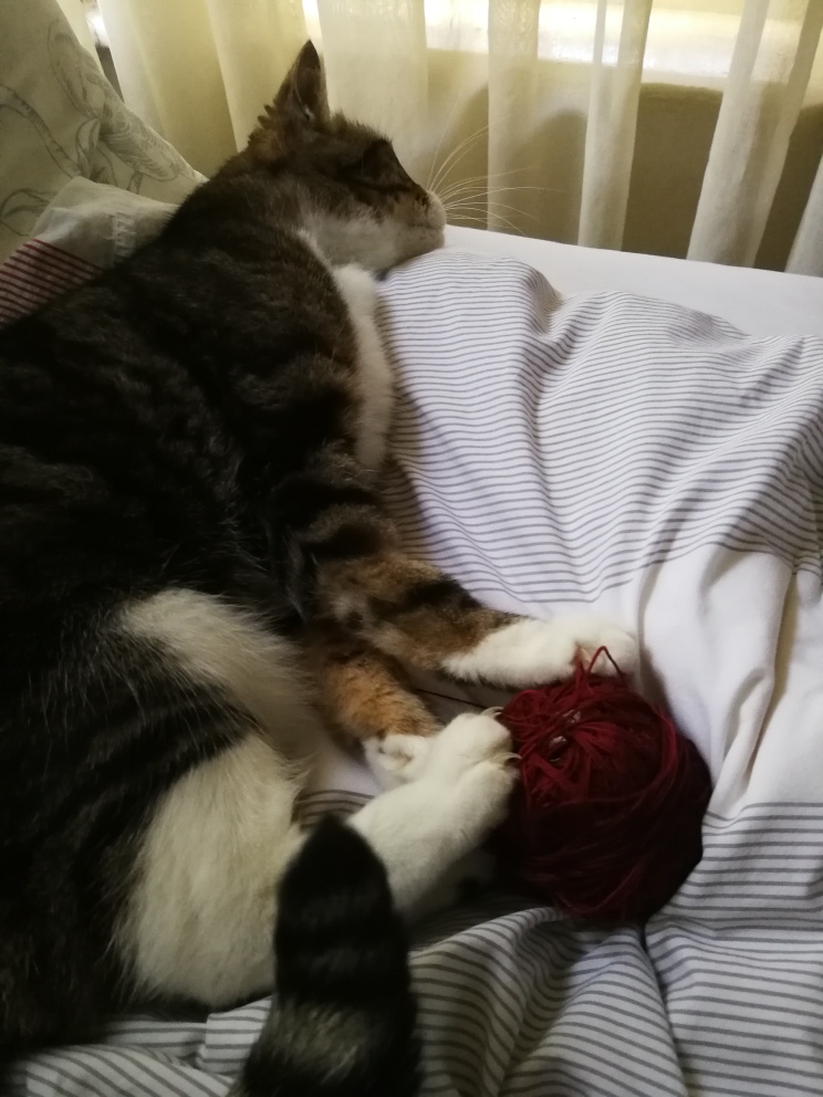 Another day of Salieri eating all on her own. I got a scale for her, so that we can monitor her weight until her operation. It pleases me no end that she has gained a little bit of weight since her return from the clinic. We must just watch out that she doesn’t get too much exercise while crocheting … ;)