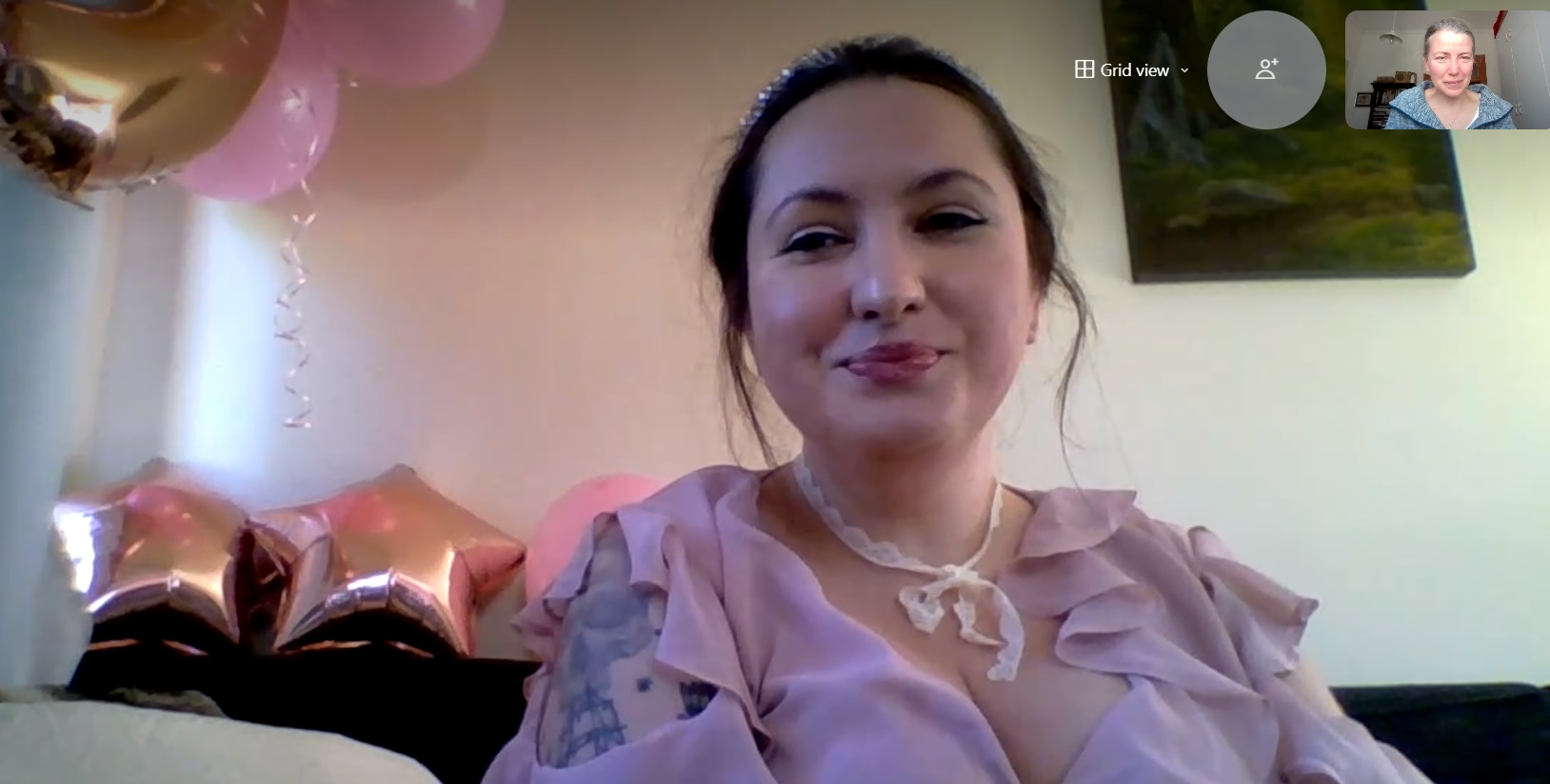 I met with a Princess on Skype today: we celebrated her birthday with a glass of pink bubbly.