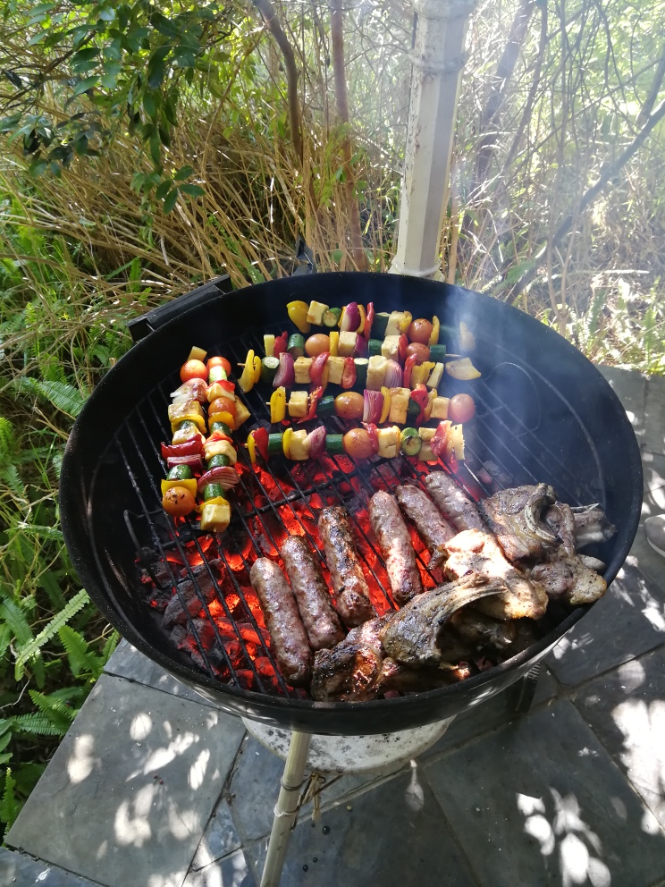 A socially distanced Sunday lunch: I braaied for my family today – my love and friends. It was the first time that I had to handle so much food on a braai at once, and it went … surprisingly well. Thank goodness only one person was watching, though – it wasn’t all exactly by the book. We had the perfect weather for an afternoon in the garden, and The Cats enjoyed having us there. Although it was difficult to explain to Salieri why she had to eat her boring, healthy food when there was sausage on the braai. I made up for it in the late afternoon by spending the rest of the day in bed watching TV with Salieri sleeping on my lap.