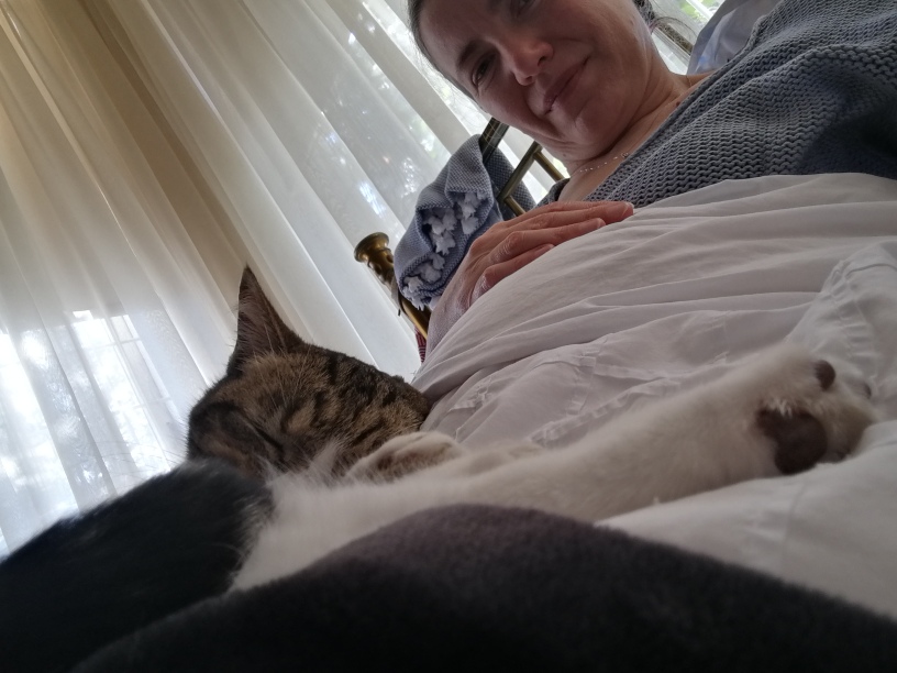 A socially distanced Sunday lunch: I braaied for my family today – my love and friends. It was the first time that I had to handle so much food on a braai at once, and it went … surprisingly well. Thank goodness only one person was watching, though – it wasn’t all exactly by the book. We had the perfect weather for an afternoon in the garden, and The Cats enjoyed having us there. Although it was difficult to explain to Salieri why she had to eat her boring, healthy food when there was sausage on the braai. I made up for it in the late afternoon by spending the rest of the day in bed watching TV with Salieri sleeping on my lap.