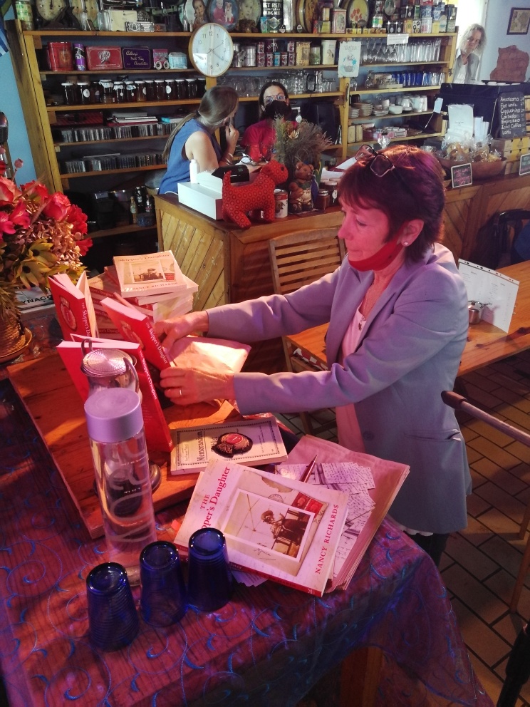 While we were in Greyton, Penny Haw was signing copies of her The Wilderness Between Us at EB Constantia. I am sorry I could not attend, but two Karavan Press authors did, Melissa A. Volker and Cathy Park Kelly. Seeing them together in a photograph made me count my lucky stars – how fortunate am I to work with these fabulous women!? In Greyton, we were joined for the launch by Christy Weyer of Liberty Books. Another superwoman, who is one of the most dedicated booksellers I know. And, of course, there was Nancy – who praised the women who shaped her path, including her larger-than-life mother.