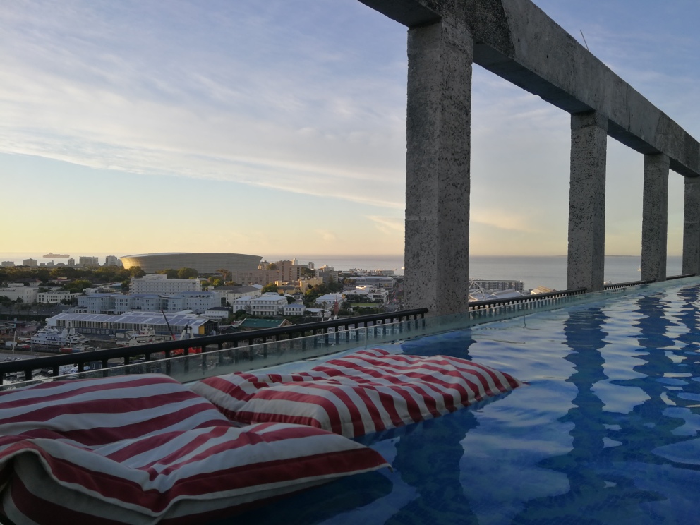 My lovely temporary neighbour (a dear friend is housesitting nearby) invited me for a beautiful lunch today, and in the evening, my love and I treated ourselves to a celebration of the longest day of the year on top of one of the loveliest places in Cape Town: The Silo Hotel. And today’s windless, balmy evening was absolutely perfect for the occasion. The city delivered with her usual spectacular charms and the evening was pure bliss.