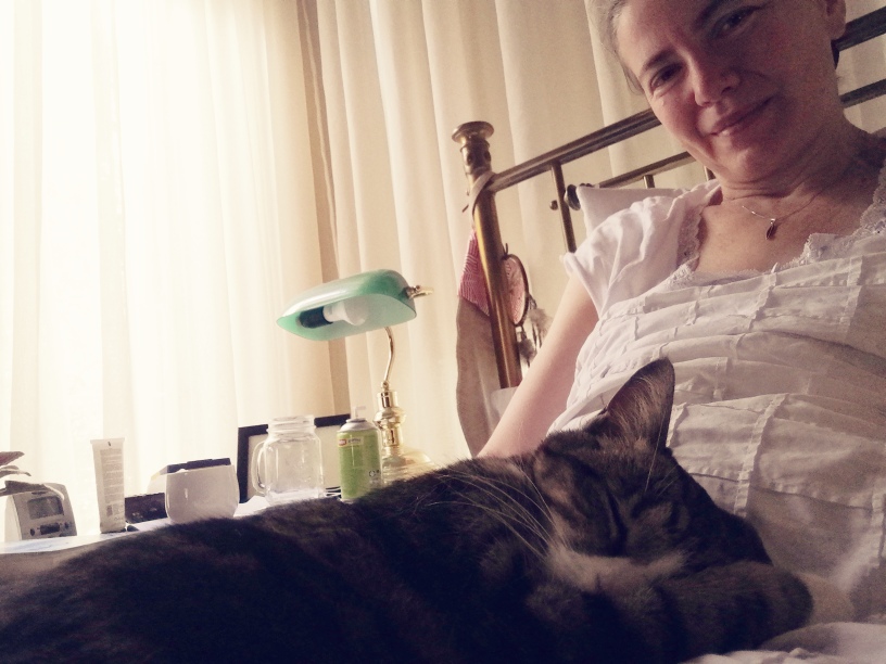 Salieri wasn’t well again this morning and vomited for the first time in weeks. I think she is better now, and has eaten well since the early incident, but just in case I made an appointment with the vet for tomorrow afternoon. I will see how she is in the morning to judge whether to take her in (always very traumatic), or allow her to be. I stayed longer in bed today just to let her sleep in loving company in the morning and the afternoon. In between, my love and I went for another walk around the Common and then I did some garden work and had a delicious lunch with my lovely friend and her delightful godson. In the afternoon, I actually returned to editing. And it felt great. I needed a rest, but I also need to complete this work.