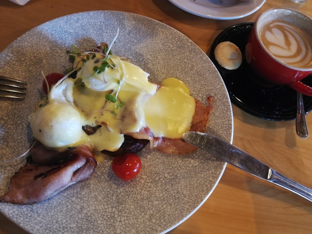 Eggs Benedict in lovely company for breakfast – that is what I call a good start to the day! Not that it was really the start, because I was already in a Skype meeting at eight before driving out to the Food Barn Deli for my treat, but it felt like the best way of welcoming a new day. Coffee with my love afterwards, a few deliveries and errands, and the rest of the day was just staring at my screen and going through the items of the to-do list for today. Finished at eight – all done.
