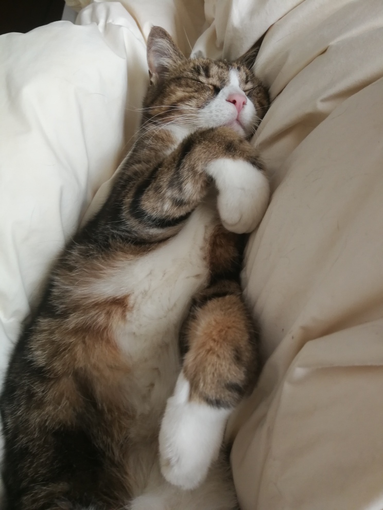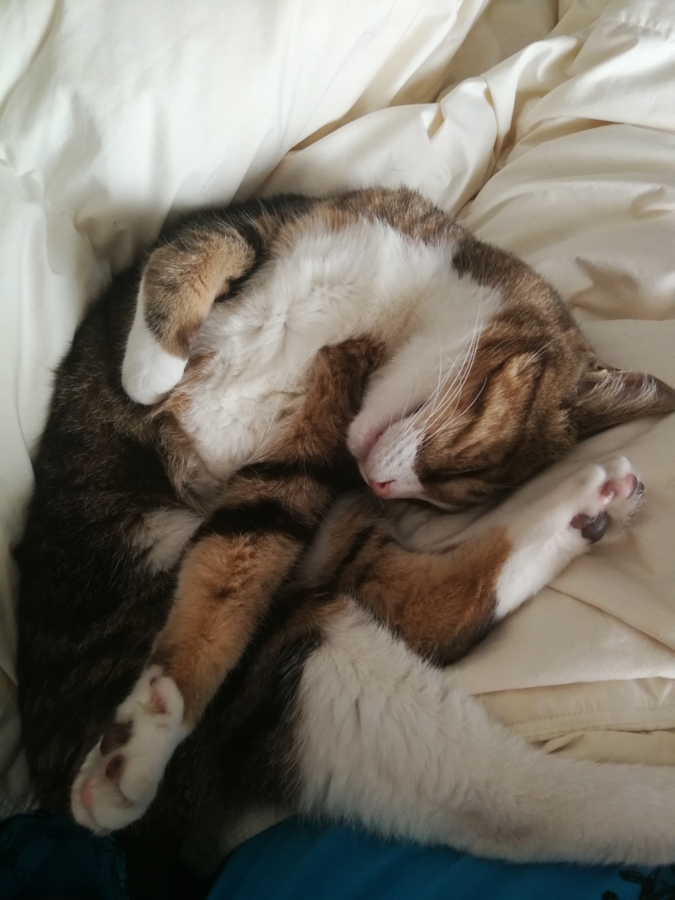 A day of monstruosity and international feline drama. When shopping online, I planned for everything but the cycles of the moon. In all this chaos, I was surprised to wake up feeling totally monstrual (thank goodness, the symptoms were immediately recognisable for what they were and could not be confused with COVID-19). The tampon count in the house revealed an imminent emergency, but luckily a friend who lives nearby got in touch just then, asking whether there was anything I needed because she was going shopping. Last time when I was in quarantine, she saved me with cat food. This time, with tampons. I did have all the painkillers needed in the house already. And they were needed. I spent most of the day in a state of utter laziness and painkiller fogginess and just read and watched TV. Salieri, bless her, spent a lot of that time purring healing into my cramping belly.