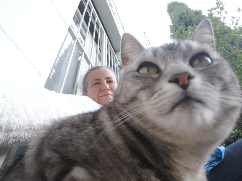 Quarantine or not, I got dressed and went out to search for her. I found her in the corner of the garden of the property two up the road from ours, looking completely lost. The moment she saw me, she just ran to me. We had to do some acrobatics to get her out over the gate, but she was so glad to see me that she allowed me to do whatever was needed to get her out. I took her home and the purring hasn’t stopped since. She had lots of water and some food, and is now sleeping on my lap as I type. What a relief that I found her. I have no idea how and why she got out, but I hope it never, ever happens again. My poor baby. Her poor cat mother!