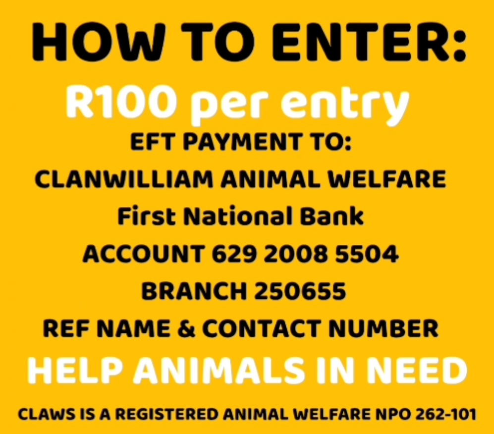 By entering the CLAWS Lucky Draw, you can support CLAWS in helping, healing, nurturing animals in the Clanwilliam area, and making miracles like Jack’s recovery possible.